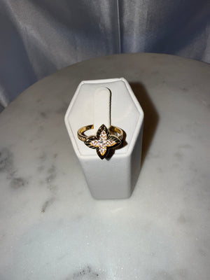 A stunning ring featuring a dazzling fleur-de-lis design encrusted with high-quality round-cut diamonds. A bold piece that signifies strength and perfection.